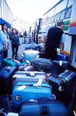 ベルリンで宿泊したグランド・ホテル・エスプラナーデから帰国の途につくバスに乗り込むメンバーたち