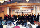 そして12月12日、ついにサントリーホールのステージに。当日は百二十人もの団員が参加。合唱団の桂冠指揮者を務めている大友直人らが指揮台に立ち、シューベルトの「ドイツ・ミサ曲」や三枝団長の作曲した「レクイエム〜曽野綾子のリブレットによる」などアンコールを含めて十三曲を歌い上げた。また、後半には料理評論家の小林カツ代を団長に女優やファッションデザイナー、アナウンサーらで結成される「神楽坂女声合唱団」が特別ゲストとして出演。コンサートに花を添え、滝廉太郎の「花」など三曲を熱唱し、コンサートは盛況の内に幕を閉じた。